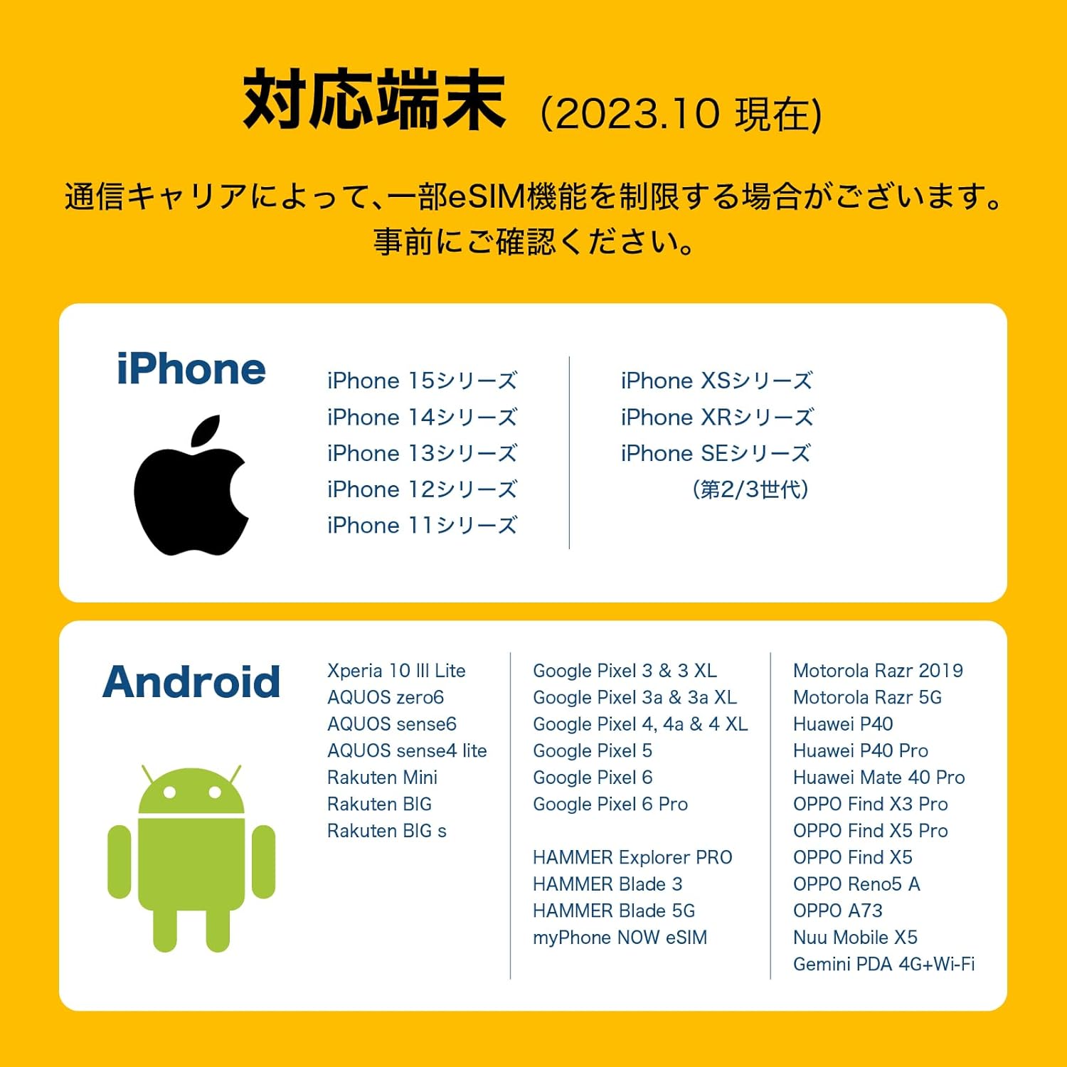 - 🔺注意事項:本商品は、SIMロックフリー端末、もしくはSIMフリー端末専用のサービスです。ご利用端末がeSIM対応か弊社にて確認はできかねますので、必ずご購入前にご確認ください。ご購入後、対応機種でなかったとの理由での返品・返金はできかねます。